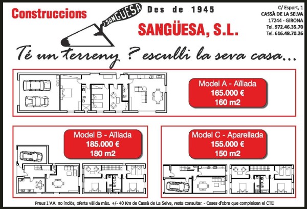 Vostè té un terreny? Doncs nosaltres li construïm un dels nostres models de casa. Sinó li agraden els nostres models o no s’adapten al seu pressupost, nosaltres ens hi adaptem.